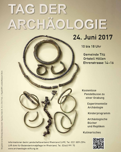 Sie sind herzlich eingeladen, dabei zu sein am 24. Juni 2017, zwischen 10.00 und 18.00 Uhr, in der Außenstelle Titz des LVR-Amtes für Bodendenkmalpflege im Rheinland, Ehrenstraße 14-16, 52445 Titz, Ortsteil Höllen (Kreis Düren).