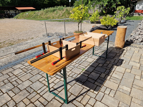Quasi auf den letzten Drücker konnte ich noch ein Kisten-Set als Werkzeugablage für Glasmacher-Vorführungen modifizieren (siehe Bild). Die Premiere wird beim "Velzeke Furnace Project 2025" sein, dem römischen Glasofenprojekt des Archeocentrum Velzeke in Belgien, das vom 9. bis 14. September 2025 läuft. Am 27. und 28. September 2025 folgt dann der nächste Einsatz in der Römischen Glashütte der RömerWelt. Infos hierzu folgen.