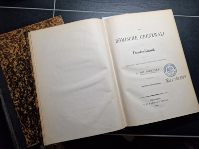 Literaturtipp: Der römische Grenzwall von August von Cohausen (1884)Bei der letzten Tagung der Deutschen Limeskommission kam dieses Frühwerk der deutschen Limesforschung zur Sprache: Der römische Grenzwall in Deutschland. Militärische und technische Beschreibung von (Karl) August von Cohausen, erschienen im C. W. Kreidel's Verlag in Wiesbaden im Jahre 1884. Mein Interesse war geweckt, kurzum wurde das zweibändige Werk (Textband und "Atlas" mit "52 Folio Tafel-Abbildungen") antiquarisch bestellt. Nach wenigen Tagen halte ich die beiden sehr gut erhaltenen Bände in Händen.