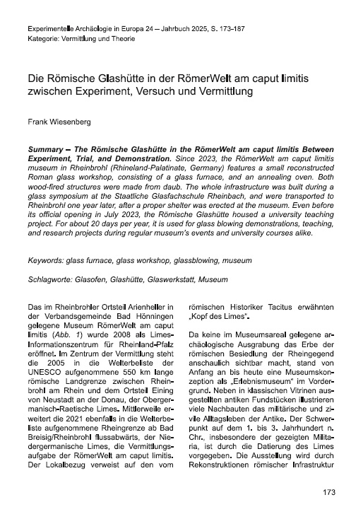 Frank Wiesenberg: Die Römische Glashütte in der RömerWelt am caput limitis zwischen Experiment, Versuch und Vermittlung