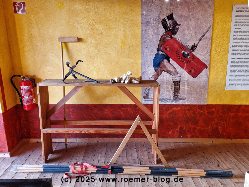 Das Set, bestehend aus einem Chorobaten, einer Groma samt Loten und einem Winkellot sowie mehreren Fluchtstäben, steht nun in der RömerWelt für Vorführungen der antiken Landvermessung bereit. Vielleicht schaffen wir es vorher noch, die chromblitzenden Senklote durch vorbildgetreue Lote aus Kupferlegierungen zu ersetzen.