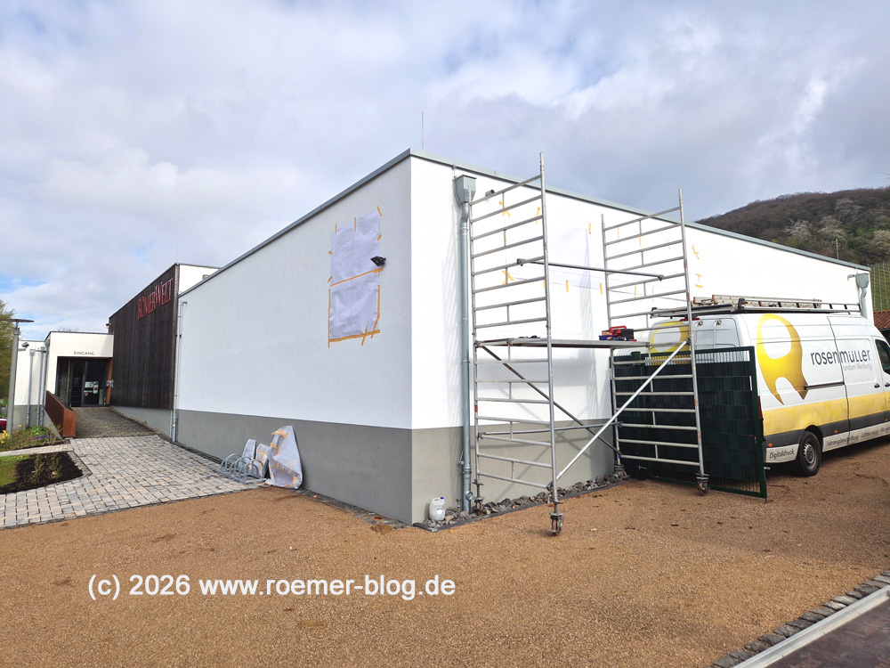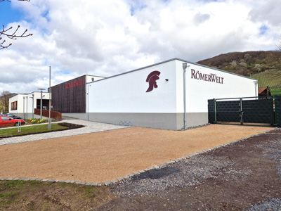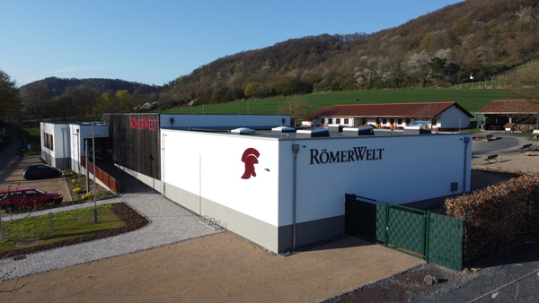 Neue Außenwerbung der RömerWelt am caput limitisDas Limes-Infozentrum RömerWelt am caput limitis wird um einen Anbau mit Ausstellungsschwerpunkten Niedergermanischer Limes und römisches Handwerk erweitert. Dafür wurde ein Anbau errichtet, dessen weiße Außenwände eine RömerWelt-rote Außenwerbung bekommen sollten.
