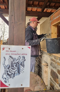 Neues aus der Latrine der RömerWelt am caput limitisDie RömerWelt am caput limitis hat endlich wieder eine Latrine! Natürlich hatte das Museum schon immer normale Toiletten - gemeint ist hier die Rekonstruktion einer römischen Bedürfnisanstalt. Die gab es zwar schon, aber da die "Freisitz-Rekonstruktion" ihre konstruktiven Schwächen aufwies, hatten wir sie ja schon vor ein paar Jahren mit dem Ziel demontiert, eine im Idealfall funktionsfähige Rekonstruktion zu wagen. Der Neubau hat sich etwas länger als gedacht hingezogen. Hier lag es nicht an der Spendenbereitschaft, denn die war groß! Es lag an der Terminkoordination der ehrenamlichen Bauarbeiterinnen und Bauarbeiter. Das war doch schwieriger als gedacht.